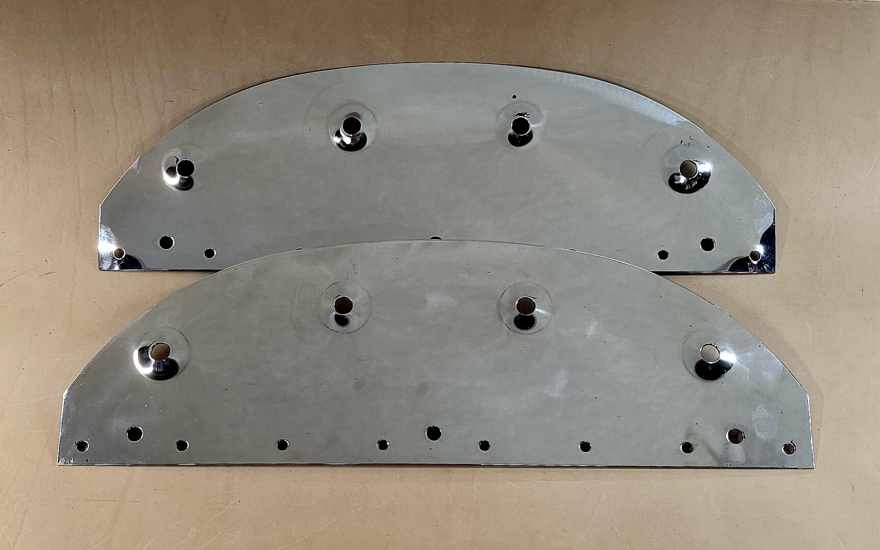 Originally, the chrome plated steel half-moon plates were available from 1940 and upward. Our plates are fabricated from stainless steel and mirror polished for a shiny chrome look.