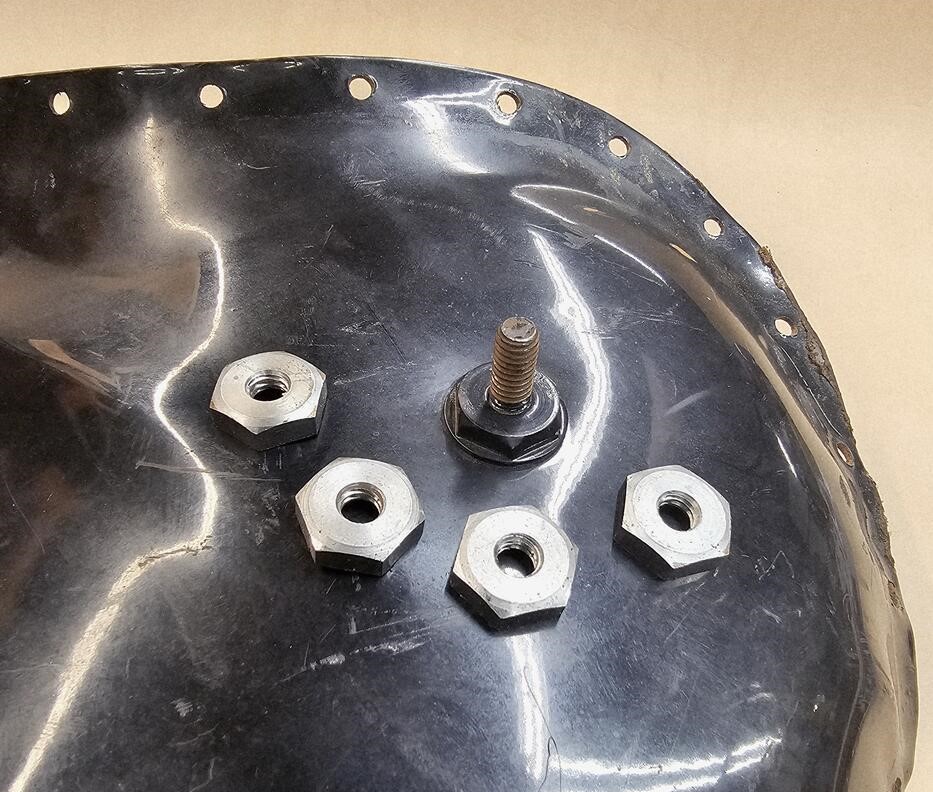 Military Scuff Studs, raw/non-finished, per piece (6 per seat). May be ordered parkerized as well. Sold as a set of 6 only.