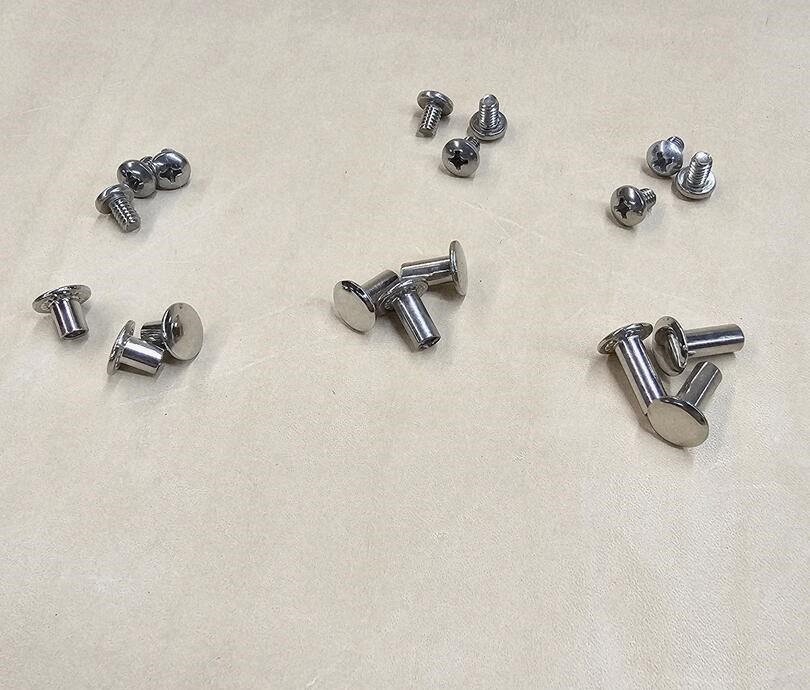 Chicago screws, nickel over brass, also called binding screws, come with the male screw and female cap. These are available in several useful sizes: 1/4", 3/8", and 1/2" posts. All available in 8-32 threads. Various applications as needed. Sold in sets of 10.